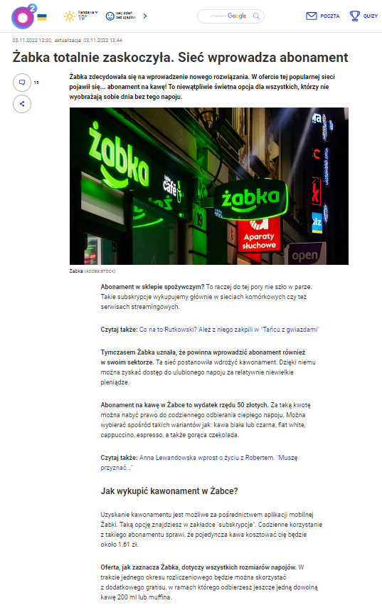 Kawa na wynos to mechanika, która generuje ruch w sklepie. Czy można wymyślić w tej kwestii coś nowego? Tak! podchodząc interdyscyplinarnie! Zespoły R&D, sprzedaży i marketingu, spojrzały na kawę oferowaną w sklepie nie jako na produkt, ale jako usługę. Zaowocowało to innowacyjnym na rynku retail modelem sprzedaży: subskrypcją na kawę czyli „Kawonamentem”. Efekty? Klienci odwiedzają sklep 2x częściej i generują o 20% większą sprzedaż.