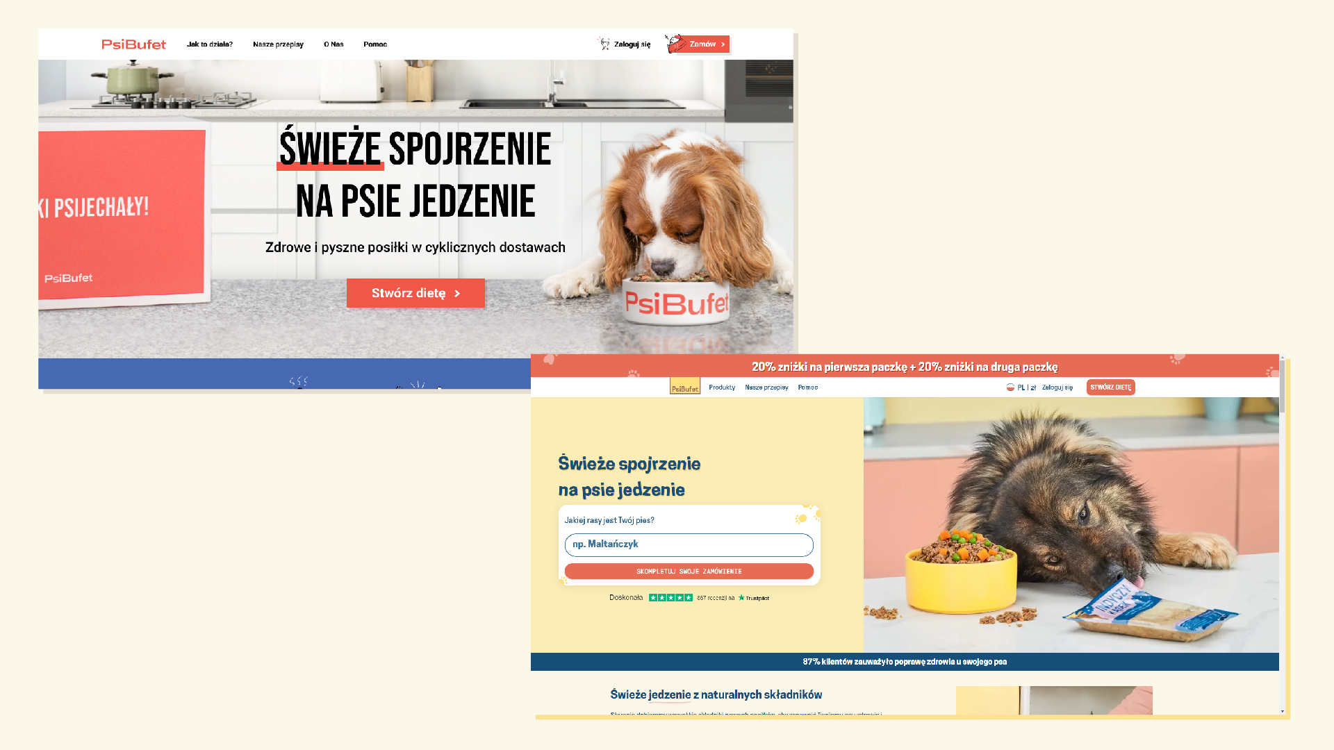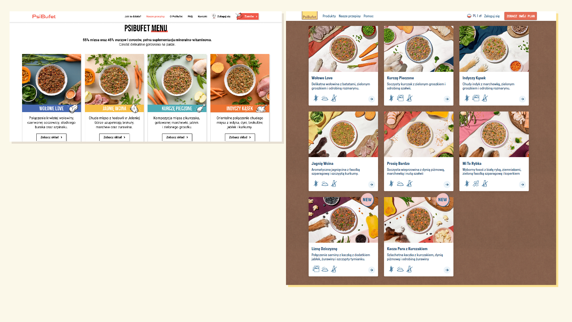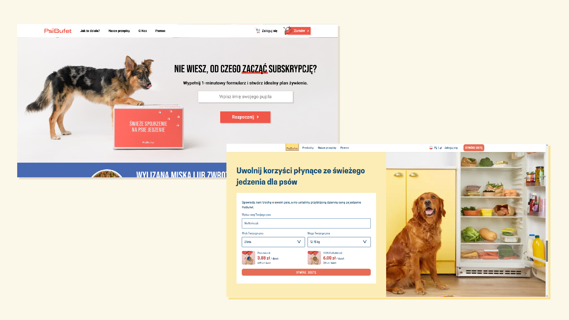 PsiBufet wprowadza powiew świeżości w całej kategorii żywienia psów, dzięki indywidualnemu podejściu oraz innowacyjnej w tej kategorii metodzie dostaw subskrypcyjnych. PsiBufet oferuje spersonalizowane posiłki dopasowane do potrzeb każdego pieska, dzięki zaawansowanej ścieżce zakupowej, dbając o najwyższą jakość produktu oraz jak najlepsze doświadczenie klienta.