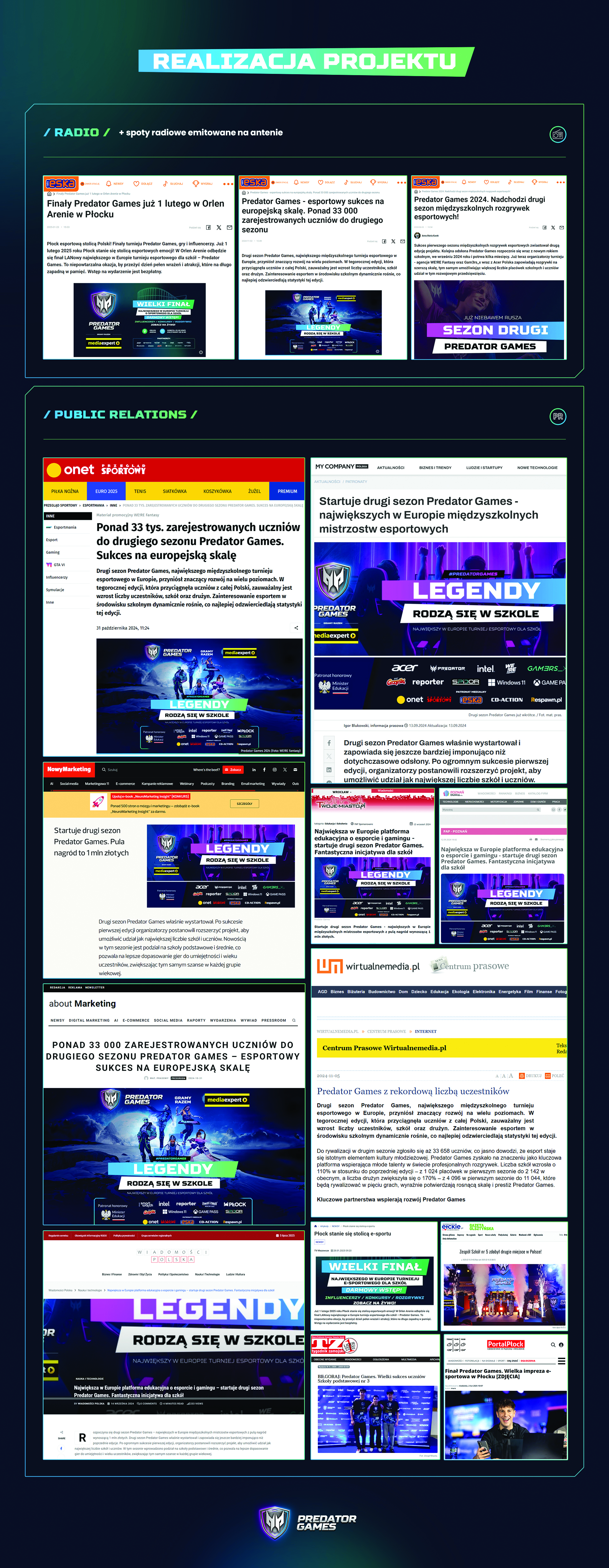 Predator Games to największy turniej esportowy dla szkół, który integruje świat gamingu z edukacją, angażując młodzież i nauczycieli jako kluczowych ambasadorów w środowisku szkolnym. Projekt skutecznie przełamał stereotypy gamingu, budując zaufanie i trwałe relacje z marką Acer. Kampania wyróżnia się kompleksowym, długofalowym podejściem, łączącym wartości rozwojowe z efektywną komunikacją gamingową na szeroką skalę.