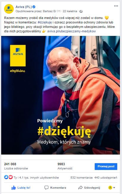 Na pandemię zareagowaliśmy szybko i odważnie - zamiast inwestować w reklamę, zainwestowaliśmy w pomoc najbardziej potrzebującym, obejmując bezpłatnym ubezpieczeniem na życie medyków, będących na pierwszej linii frontu walki z epidemią. Produkt przygotowaliśmy w 7 dni. Szybkie działanie, z minimalnym wsparciem płatnym, wywołało niezwykle szeroki odzew i pozytywne emocje. W ciągu niespełna dwóch tygodni do ubezpieczenia przystąpiło 29 tysięcy osób.