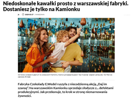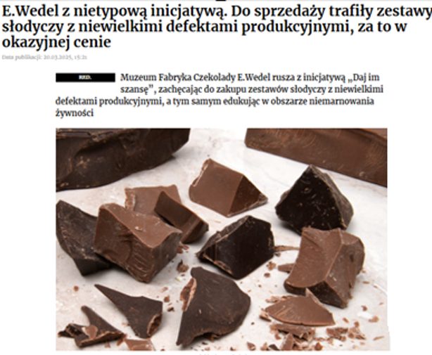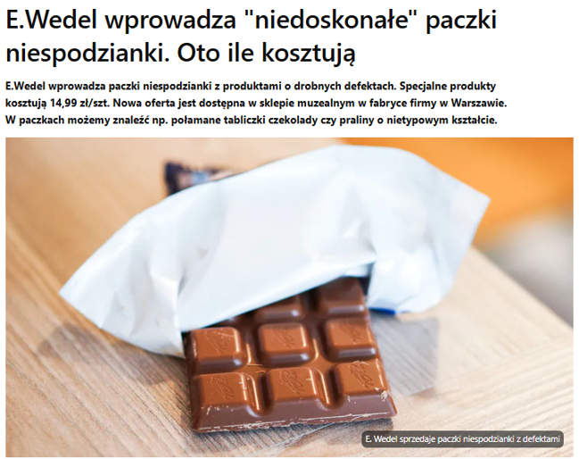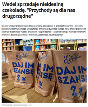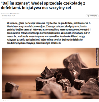 Nieidealna czekolada, wafelki, pianki Ptasie Mleczko®? Idealny pomysł! „Daj im szansę” to inicjatywa E.Wedel, która pokazuje, że lekko połamana tabliczka też zasługuje na bycie zjedzoną. Kupując zestawy z drobnymi defektami w sklepie muzealnym Fabryki Czekolady E.Wedel, wybierasz smak i wspierasz ideę less waste. Bo mniej idealne nie znaczy gorsze!