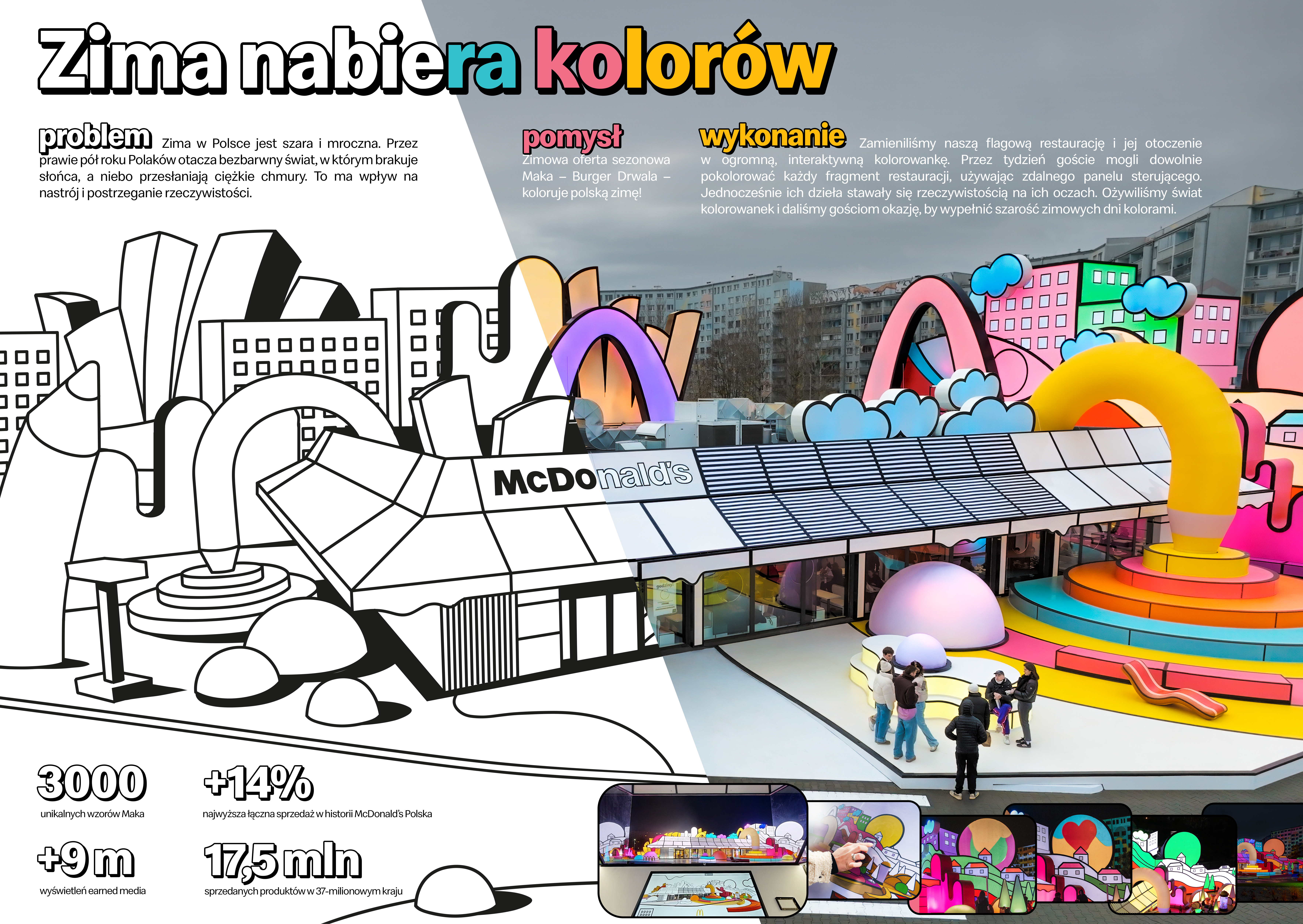 Zmieniliśmy McDonald’s w gigantyczną, interaktywną kolorowankę, którą każdy mógł kolorować w czasie rzeczywistym. Za pomocą specjalnego panelu połączonego z ekranami LED, które tworzyły konstrukcję bryły restauracji goście eventu tworzyli swoje kolorystyczne wersje Maka.