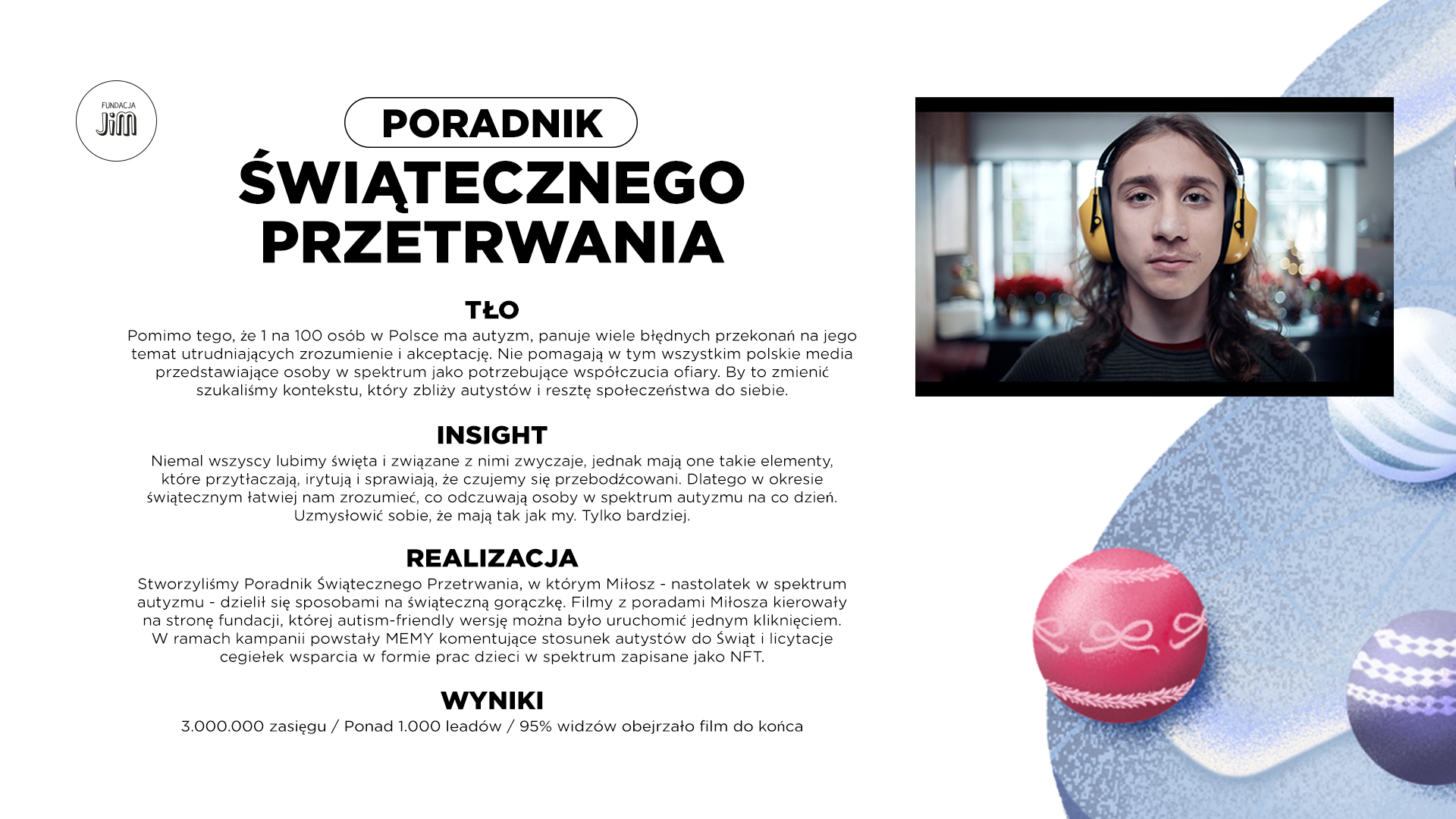 Nastolatek w spektrum autyzmu dzieli się swoimi lifehakami jak przetrwać świąteczną gorączkę. Zrywając z panującym w mediach krzywdzącym wizerunkiem austysta=ofiara, staje się bohaterem ratującym Święta innym.