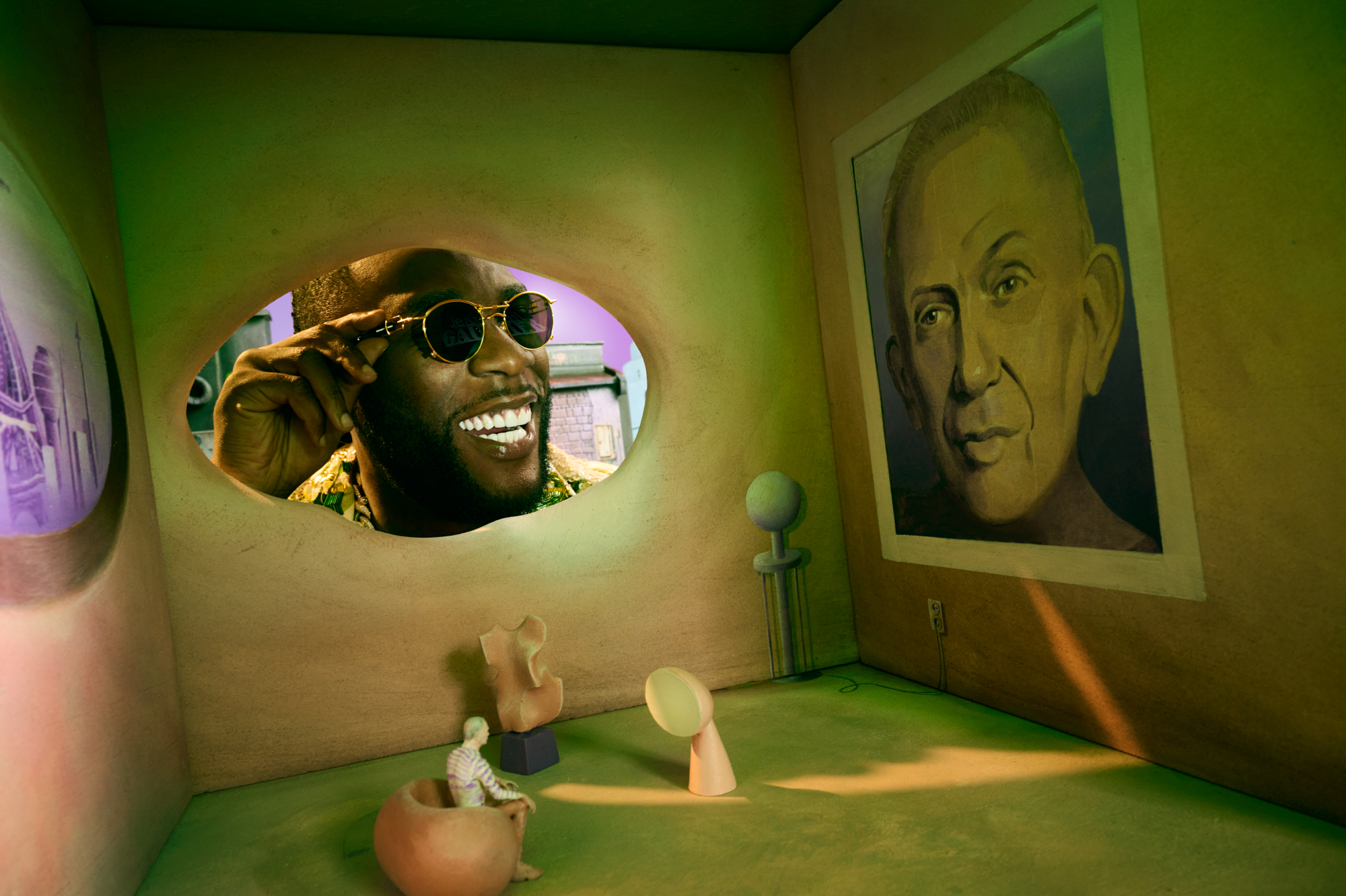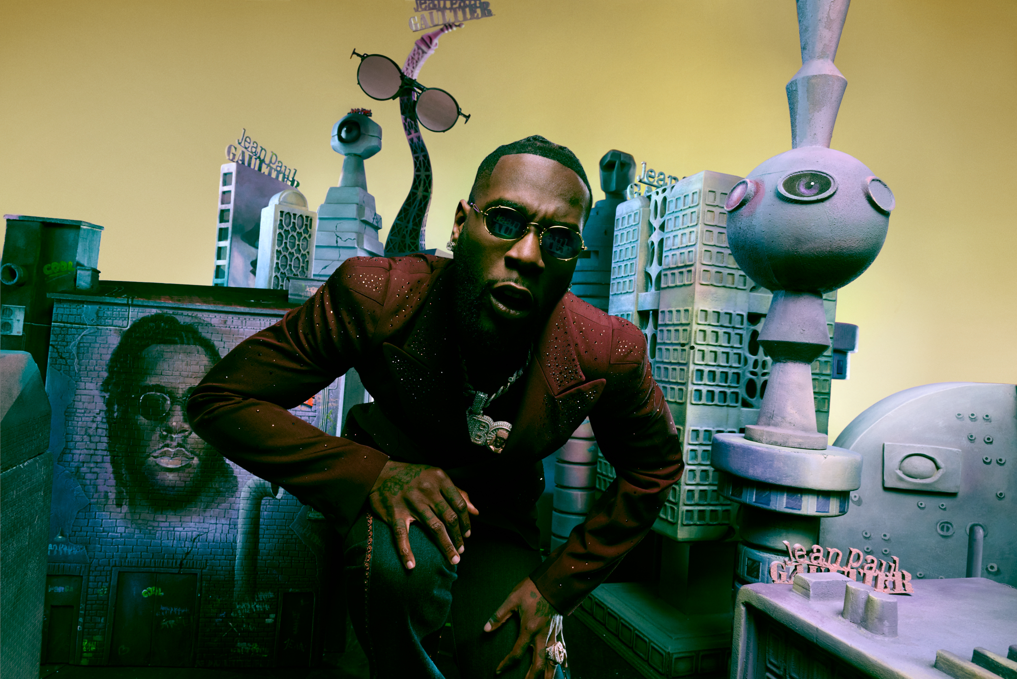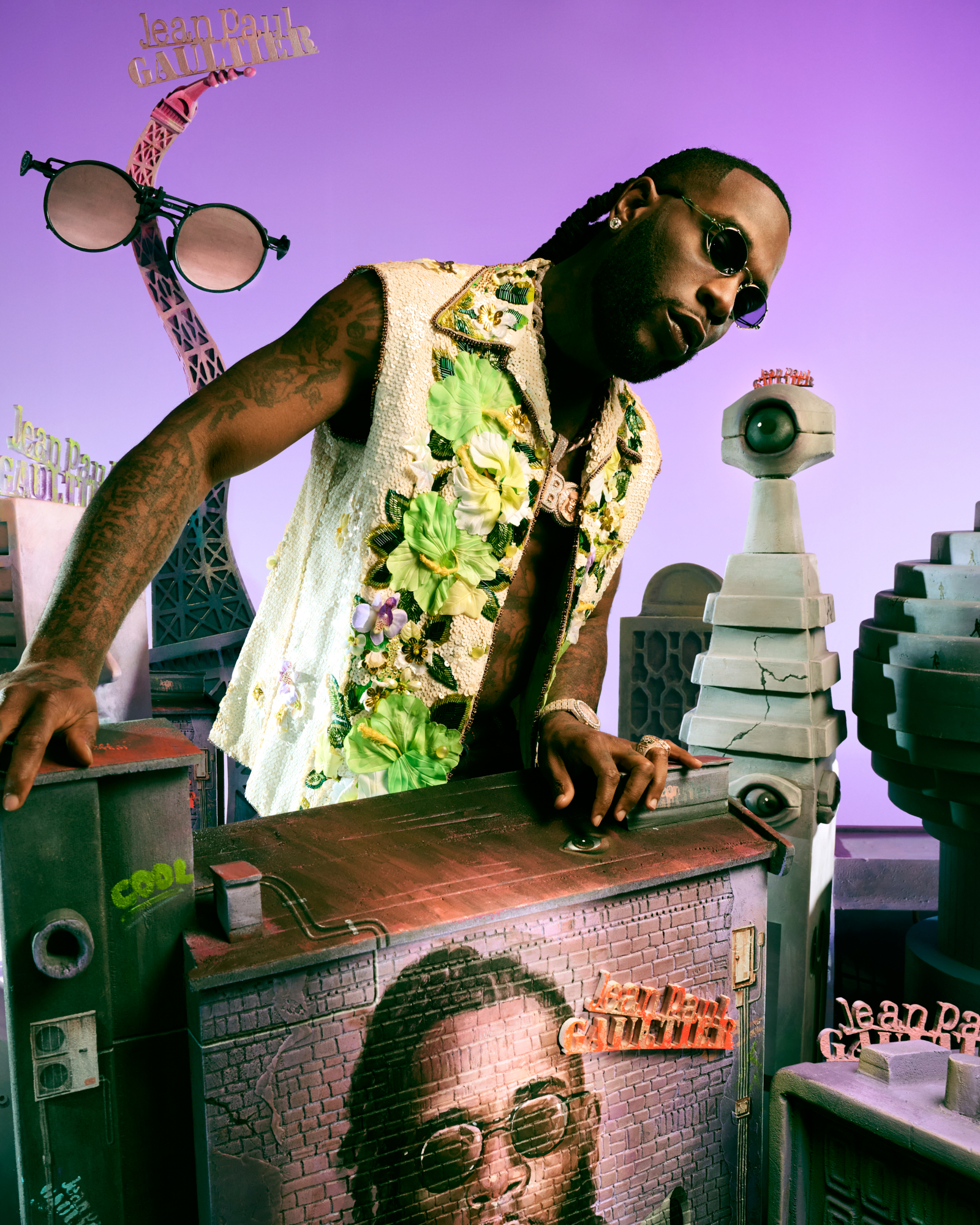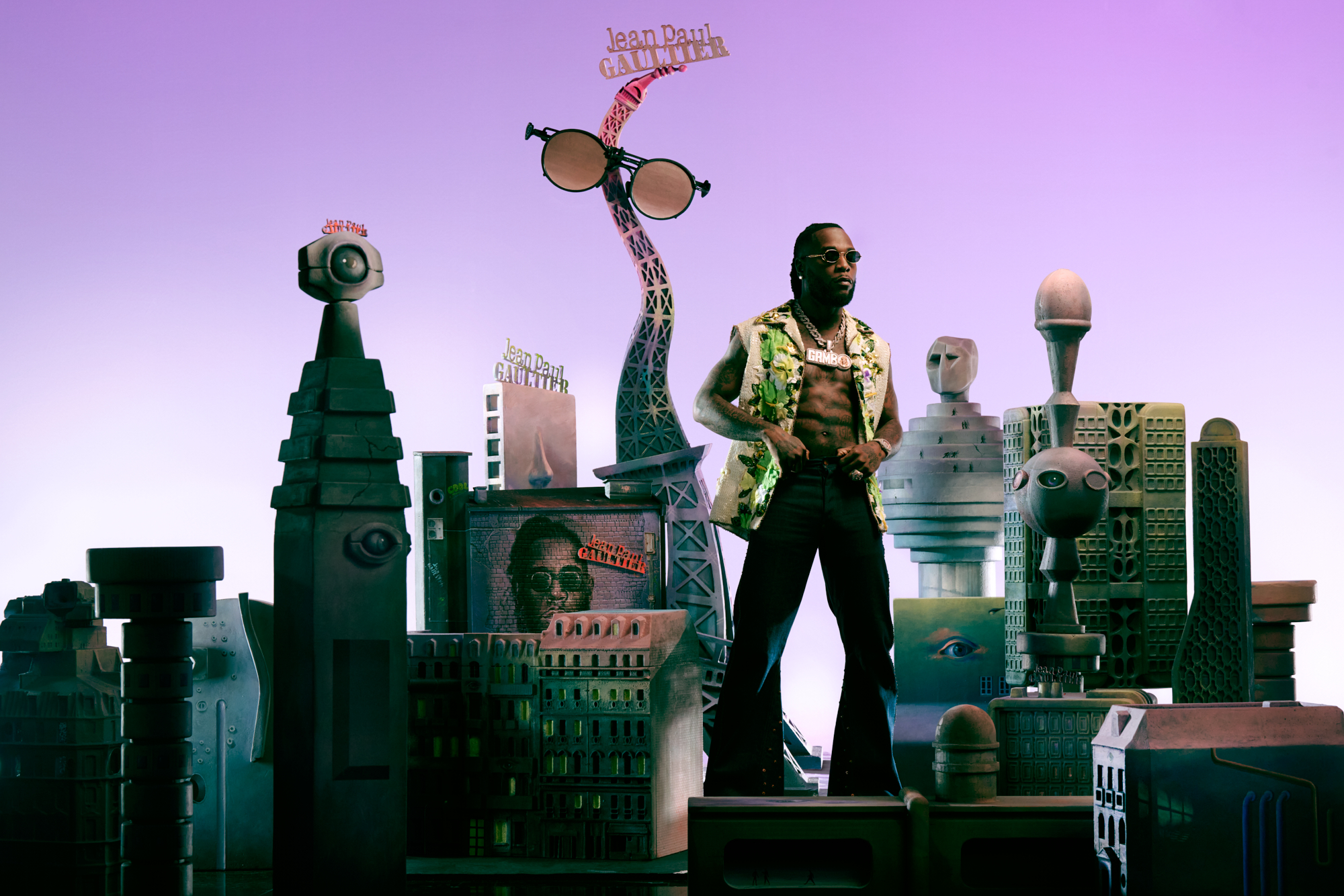 Kampania promująca kolaborację francuskiego domu mody Jean Paul Gaultier z raperem Burna Boyem, który stworzył swoją kolekcję okularów.