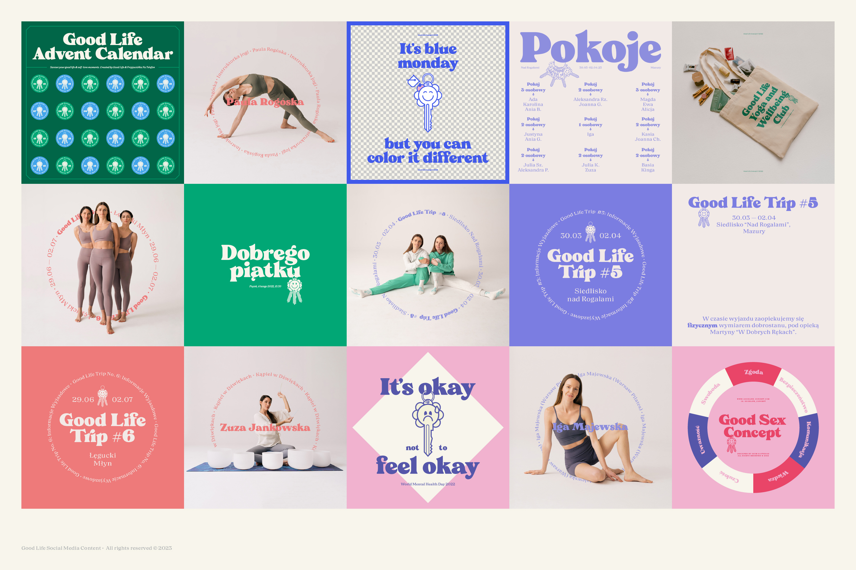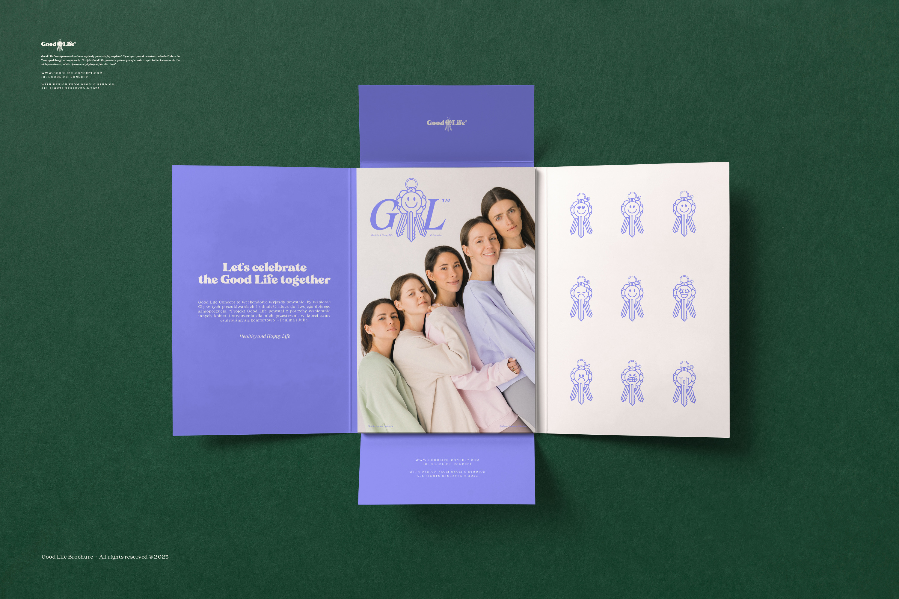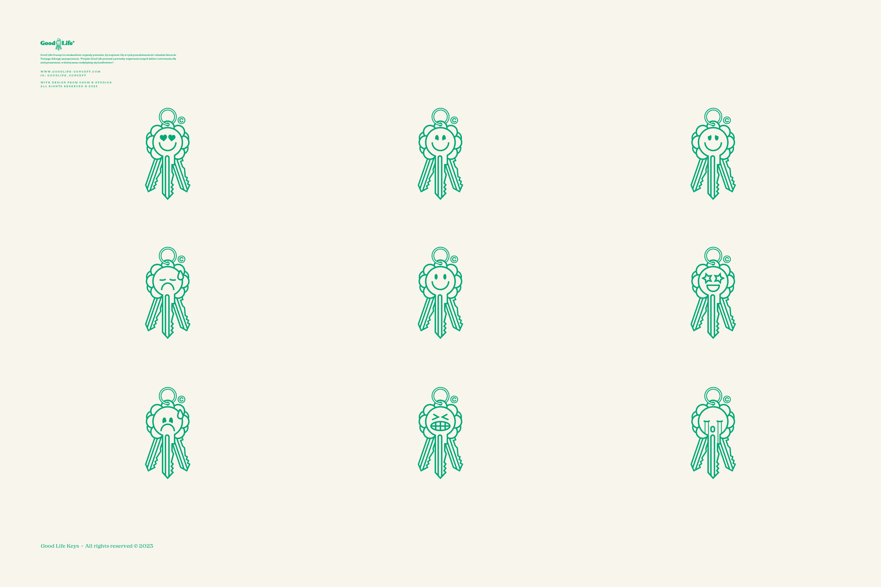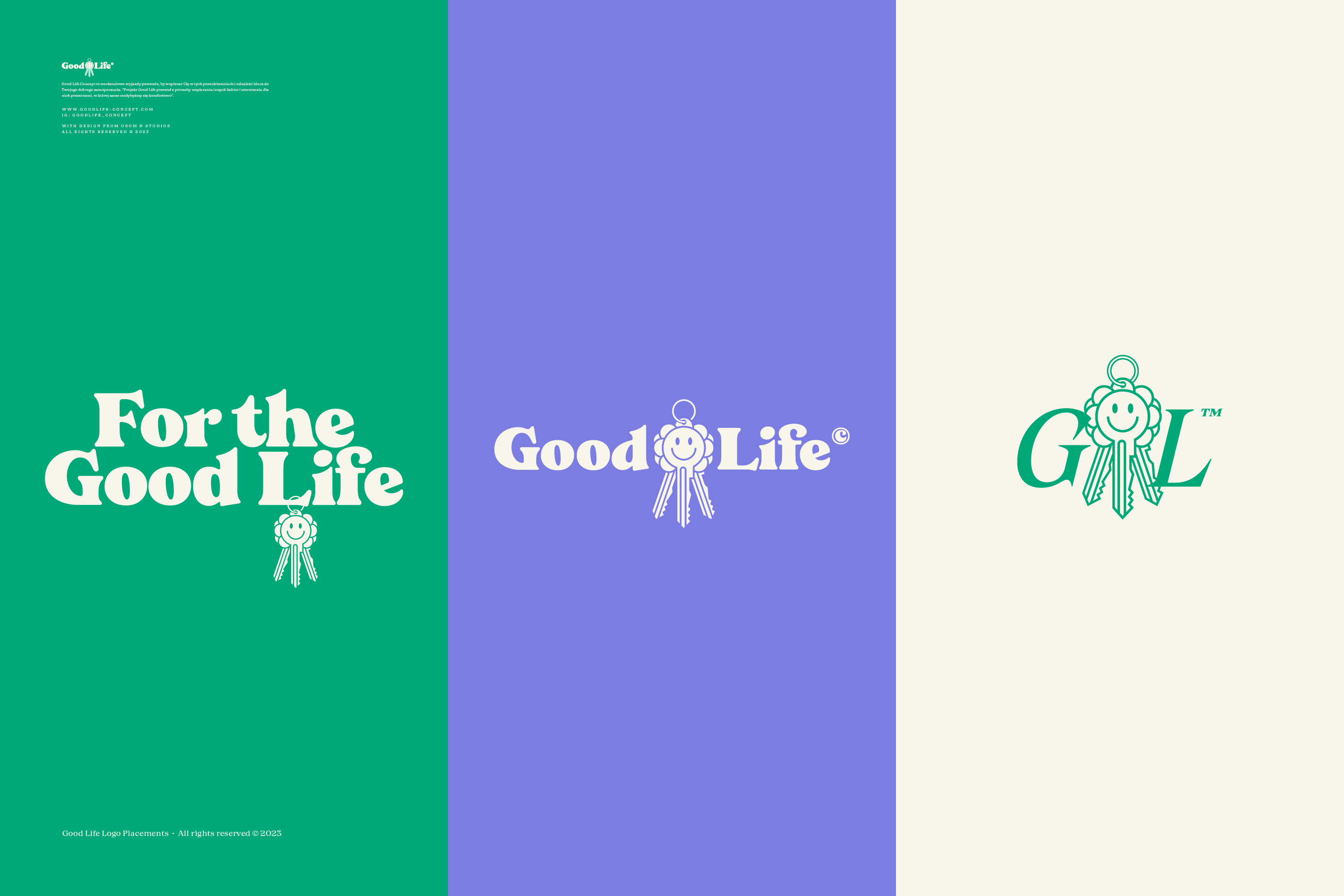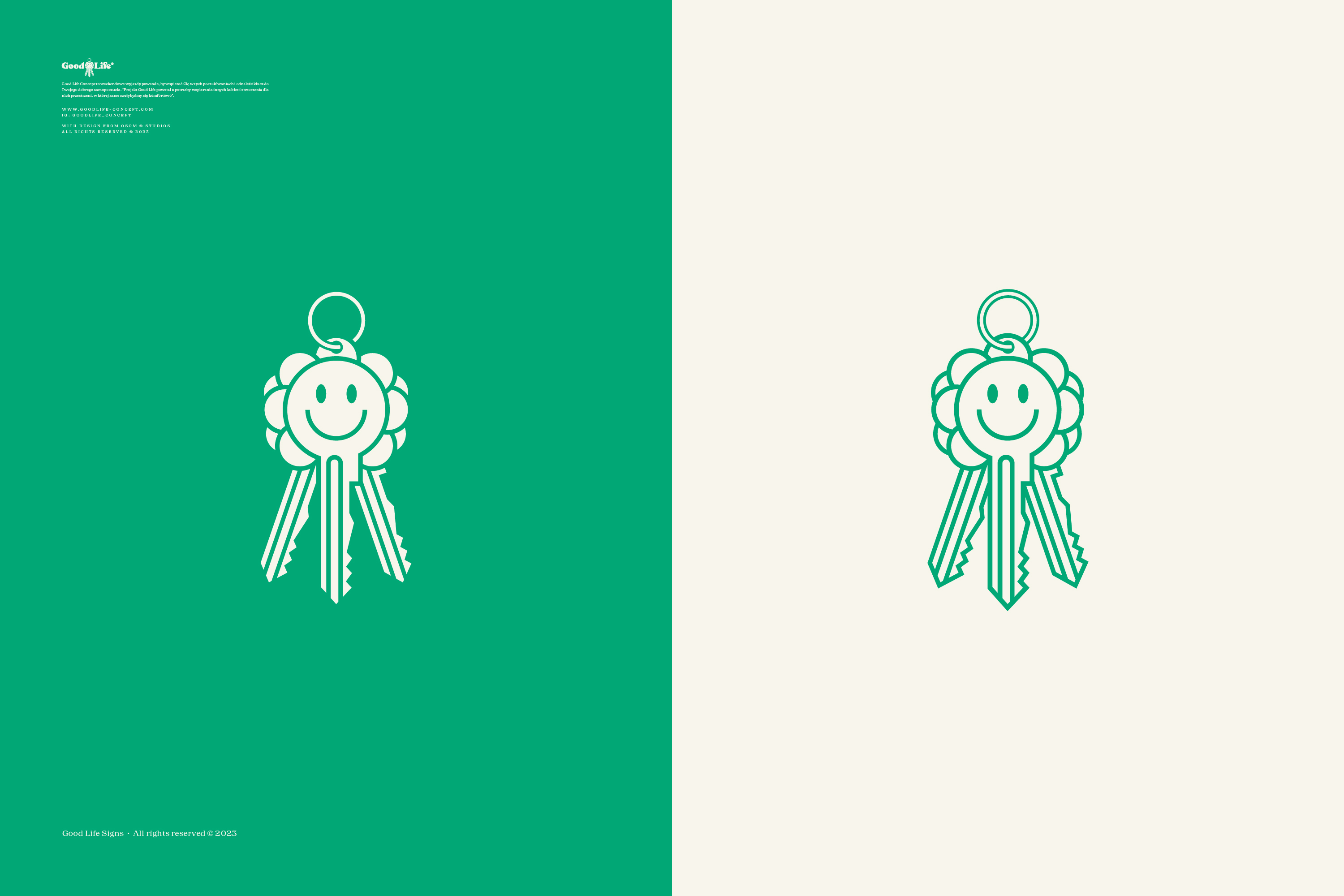 Good Life to koncept, który wspiera Kobiety w zarządzaniu ich poczuciem szczęścia i dostarcza im narzędzia, które to ułatwią. Jego znak oparty jest o połączenie kwiatu z kluczem, który zmienia swoje emocje i oblicza - w końcu każdy ma inny klucz do swojego szczęścia.