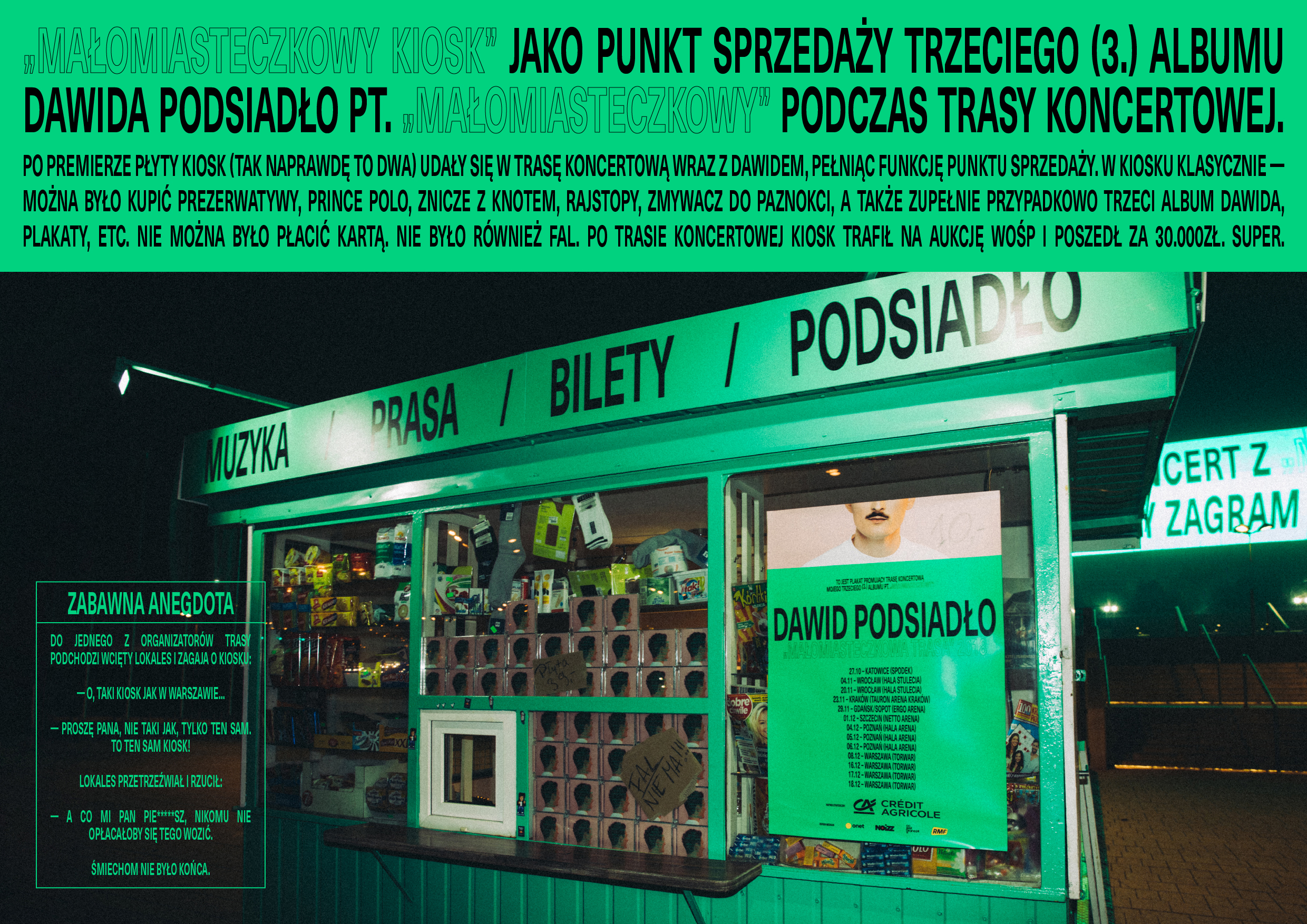TO JEST MAŁOMIASTECZKOWY KIOSK BĘDĄCY CZĘŚCIĄ KAMPANII PROMOCYJNEJ TRZECIEGO (3.) ALBUMU DAWIDA PODSIADŁO PT. „MAŁOMIASTECZKOWY"