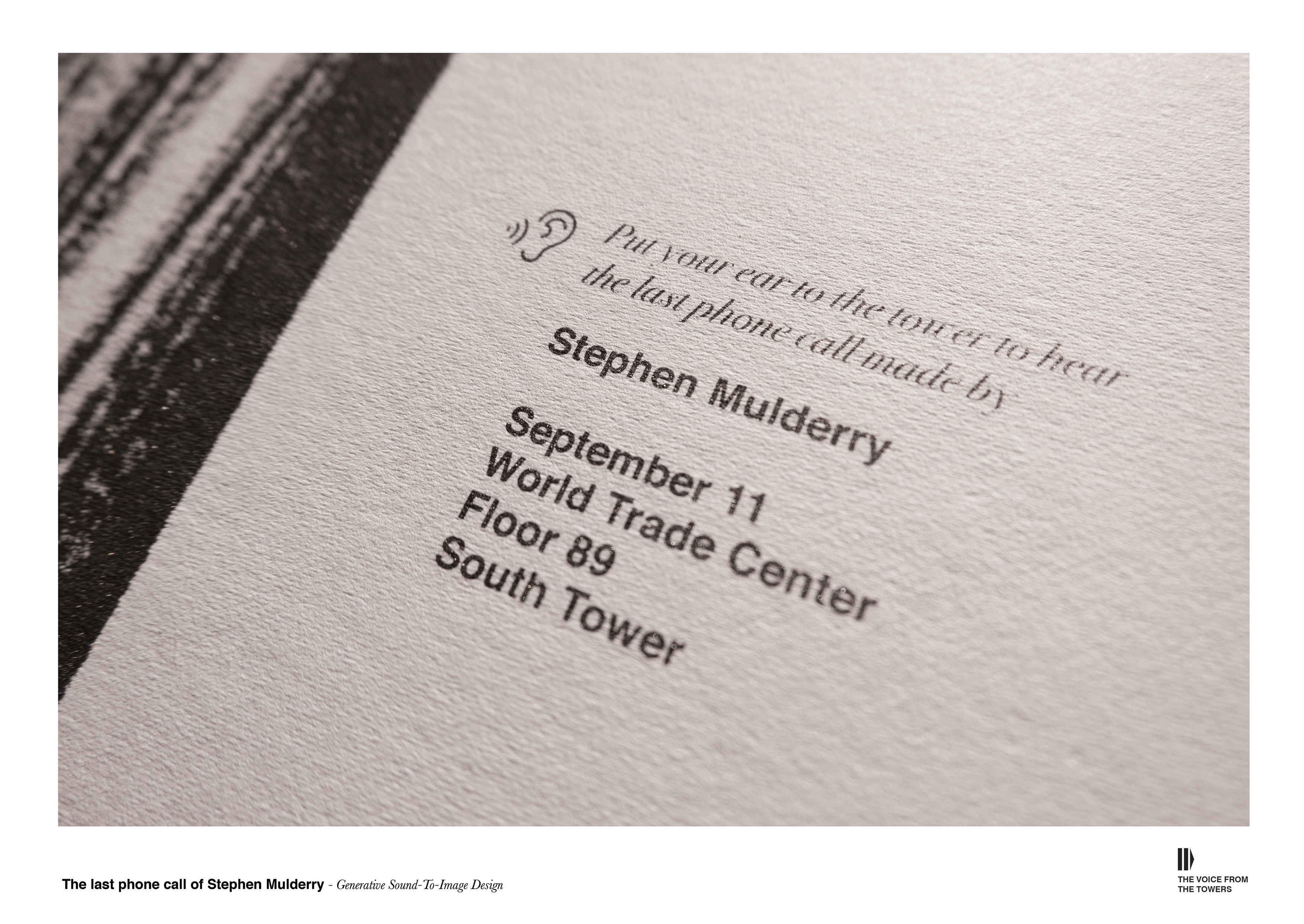 11 września 2001, ludzie uwięzieni nad strefą uderzenia mogli kontaktować się ze światem zewnętrznym tylko przy pomocy telefonu. Przy pomocy generatywnego designu zamieniliśmy rozmowy telefoniczne sześciu ofiar 9/11 w symboliczne wieże World Trade Center.