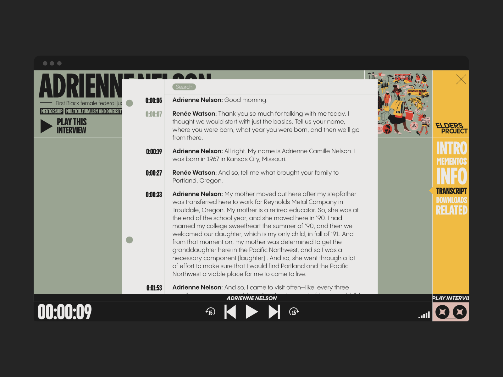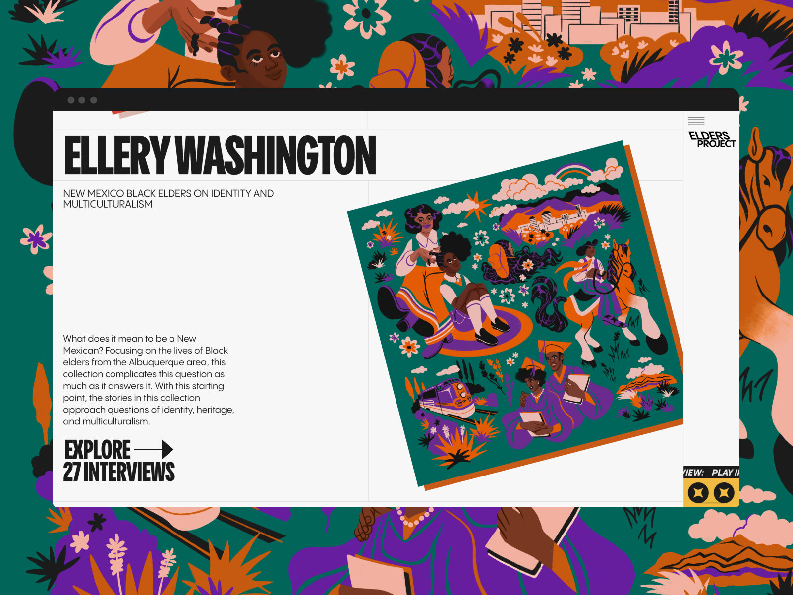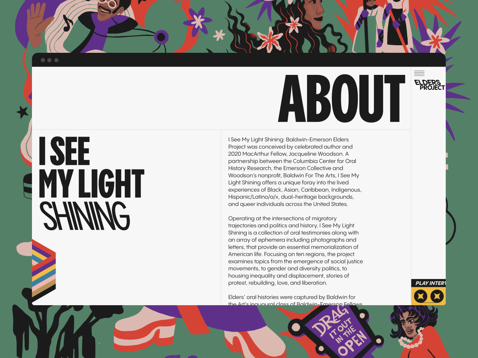 Elders Project to platforma cyfrowa Columbia University poświęcona historiom starszych osobom z niedostatecznie reprezentowanych środowisk – mniejszościom etnicznym, osobom nie binarnym i imigrantom. Za pomocą wywiadów, esejów, pięknych ilustracji oraz animacji te skazane często na zapomnienie historię uzyskują status, na jaki dawno zasługiwały.