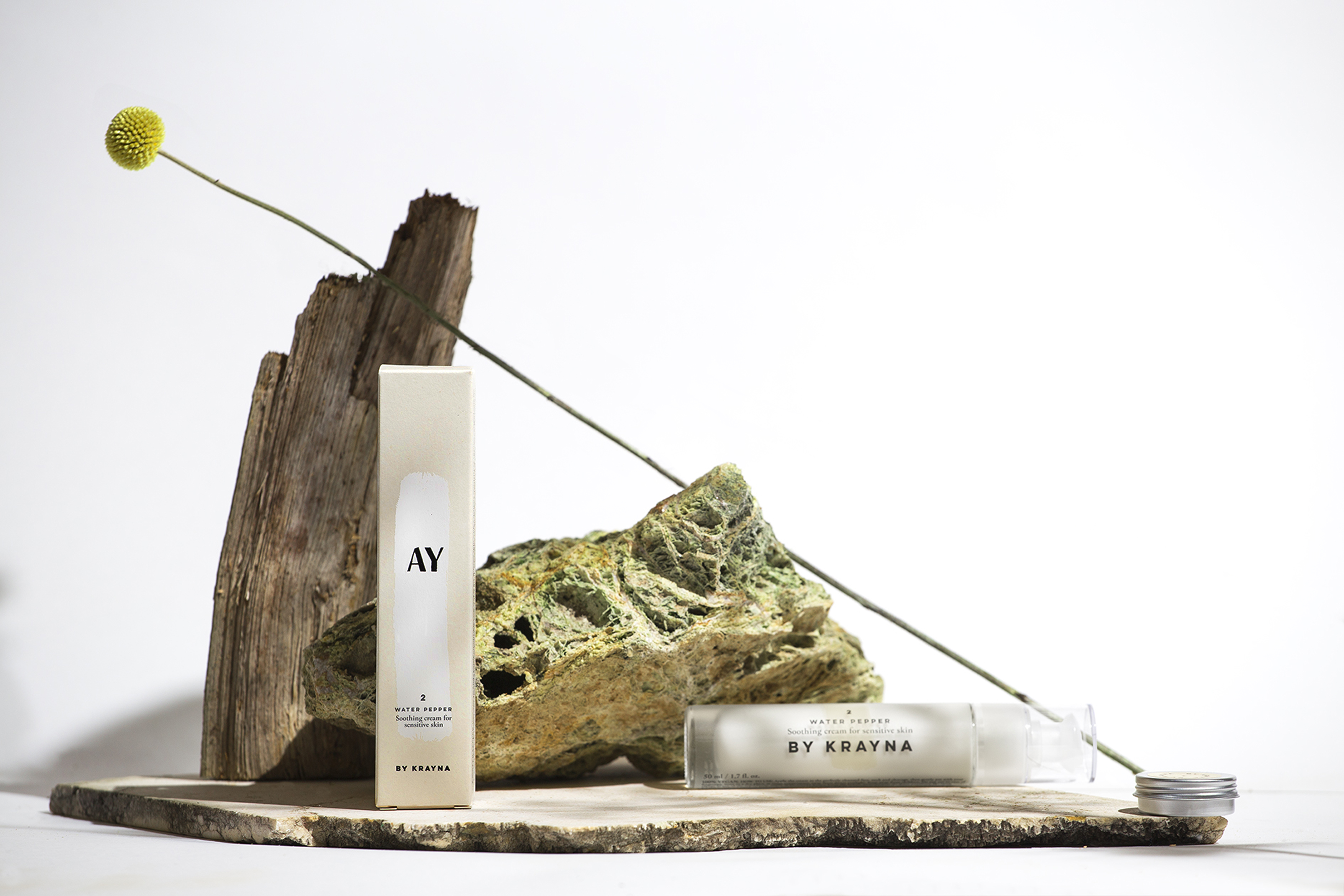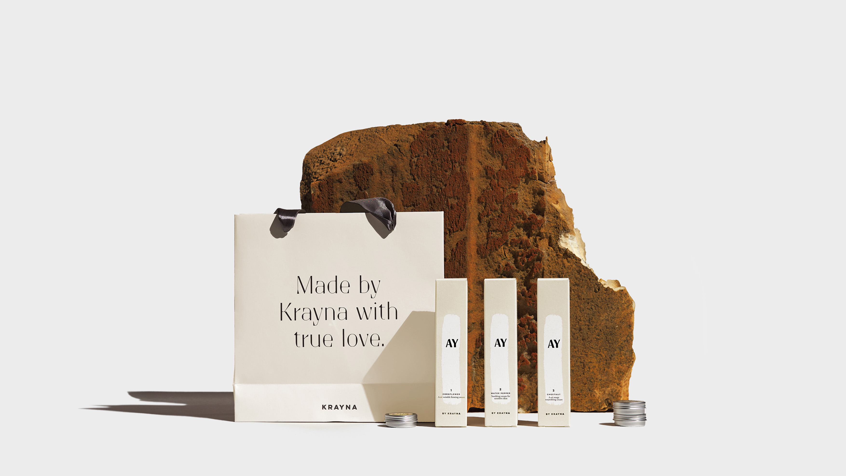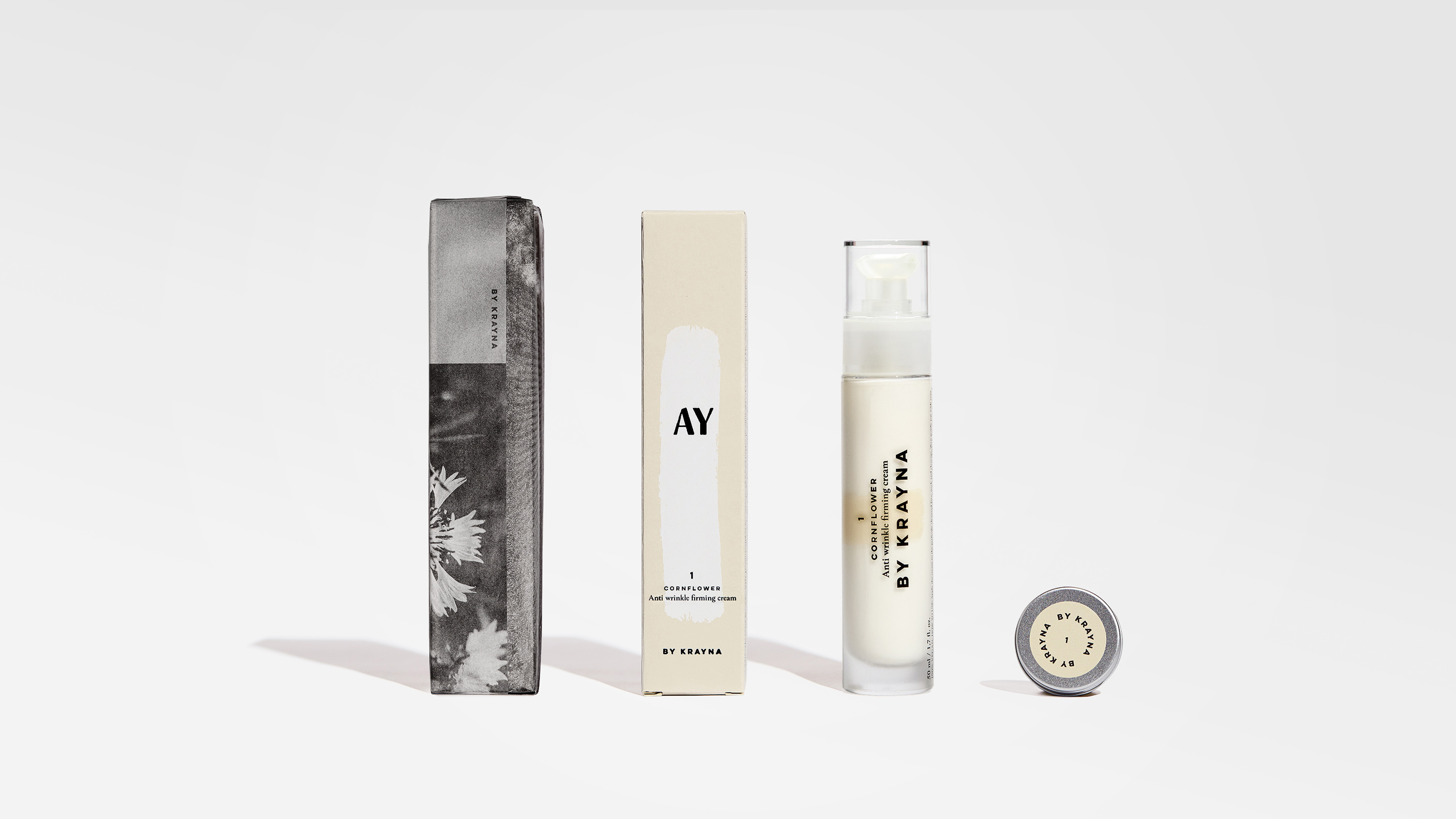 KRAYNA to młody polski brand kosmetyczny wprowadzający na rynek swój pierwszy produkt: AY - autorską kolekcję 4 wegańskich kremów. Ideą marki jest przejrzystość, otwartość, lokalność oraz dbałość o naturę. Kierując się tymi wartościami, stworzyliśmy opakowania oddające czystość i naturalność produktów, osiągając również pożądany komunikat unisex.
